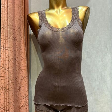 Débardeur en laine et soie avec dentelle Leavers Signature Taupe