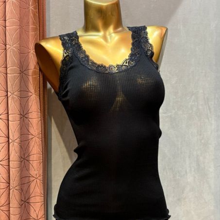 Débardeur en laine et soie avec dentelle Leavers Signature Noir