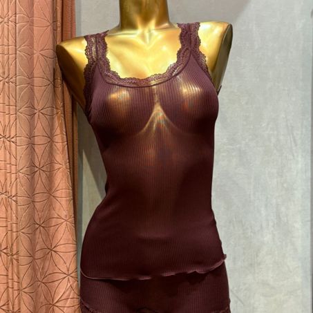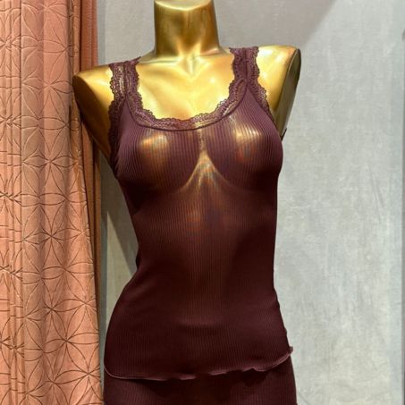 Débardeur en soie avec dentelle Leavers Dali Cherry