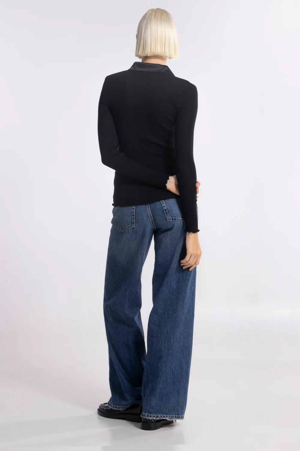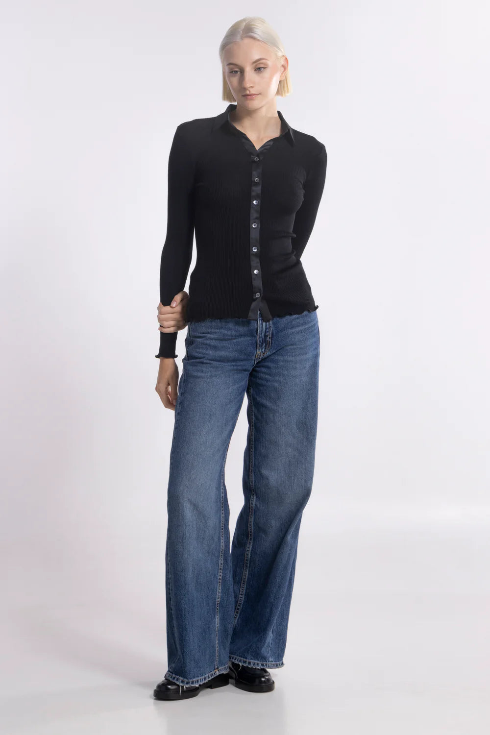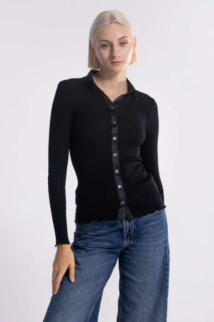 Chemisier en laine et soie Col V Cortina Noir - 2 est en rupture de stock et sera envoyé dès qu'il sera disponible