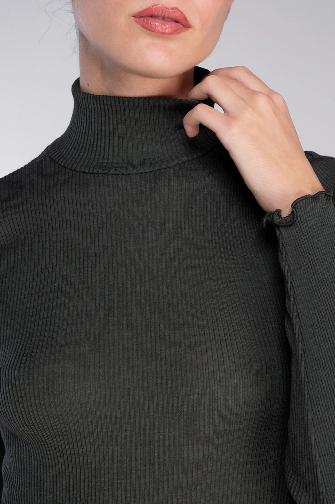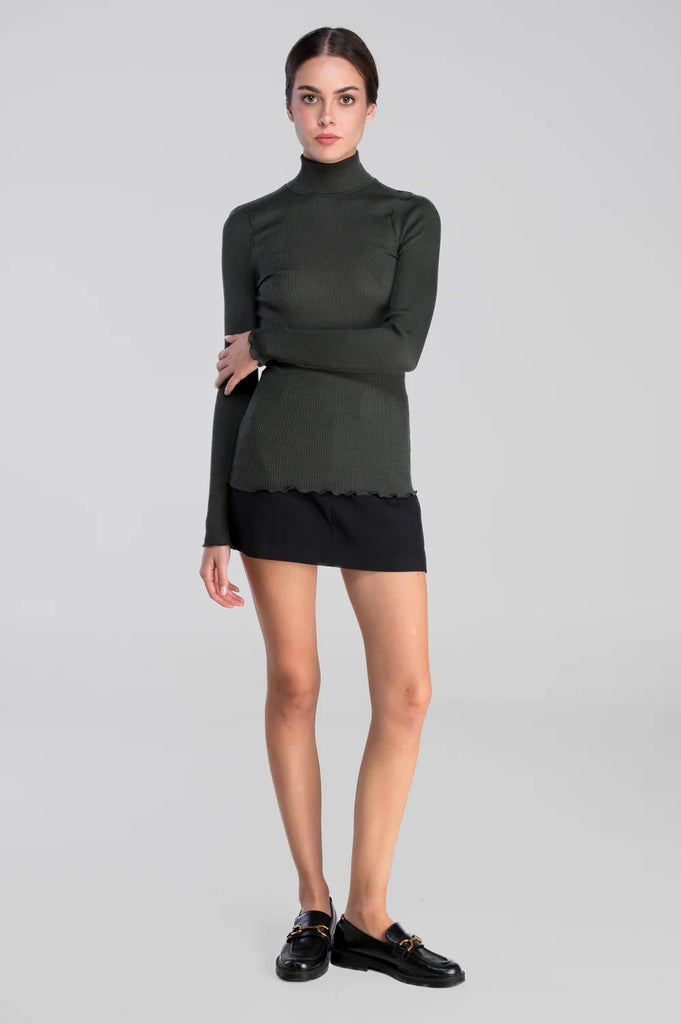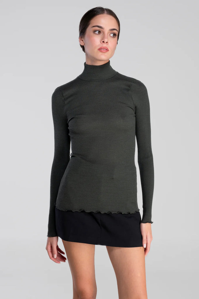 Pull col cheminée en laine mérinos et soie Roma Vert Bosco - 2 est en rupture de stock et sera envoyé dès qu'il sera disponible