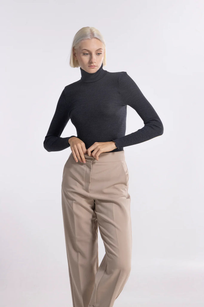 Pull col roulé en laine mérinos et soie Roma Gris anthracite
