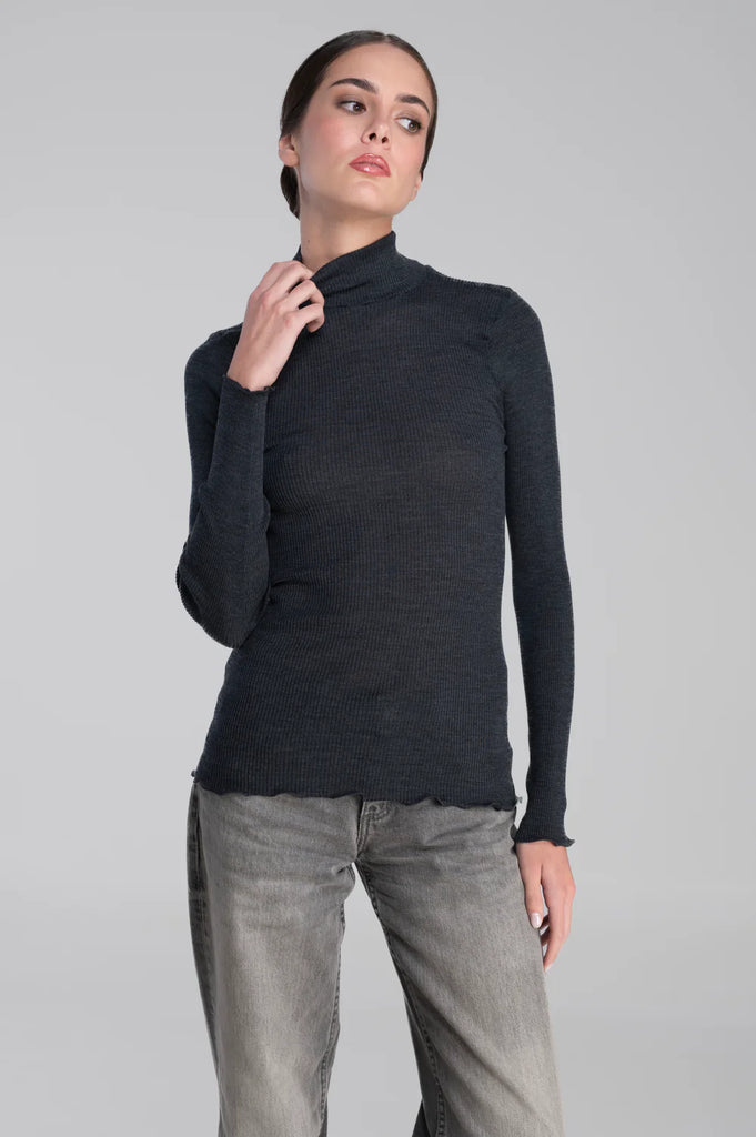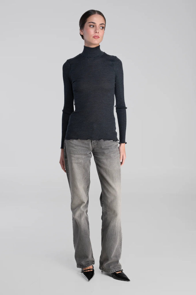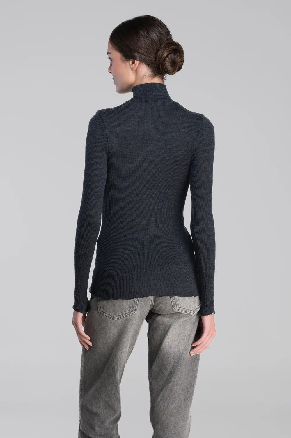 Pull col cheminée en laine mérinos et soie Roma Gris anthracite - 2 est en rupture de stock et sera envoyé dès qu'il sera disponible