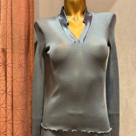 Pull en laine mérinos et soie col V Cortina Tempesta - 2 est en rupture de stock et sera envoyé dès qu'il sera disponible