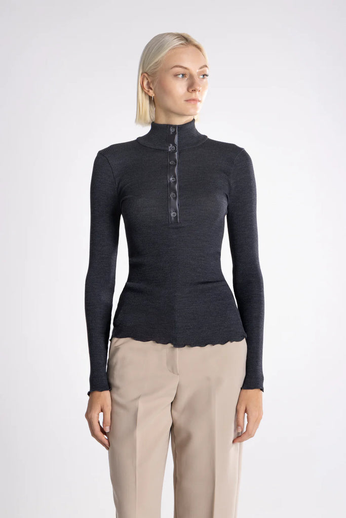 Pull en laine mérinos et soie Cortina Gris Ardesia